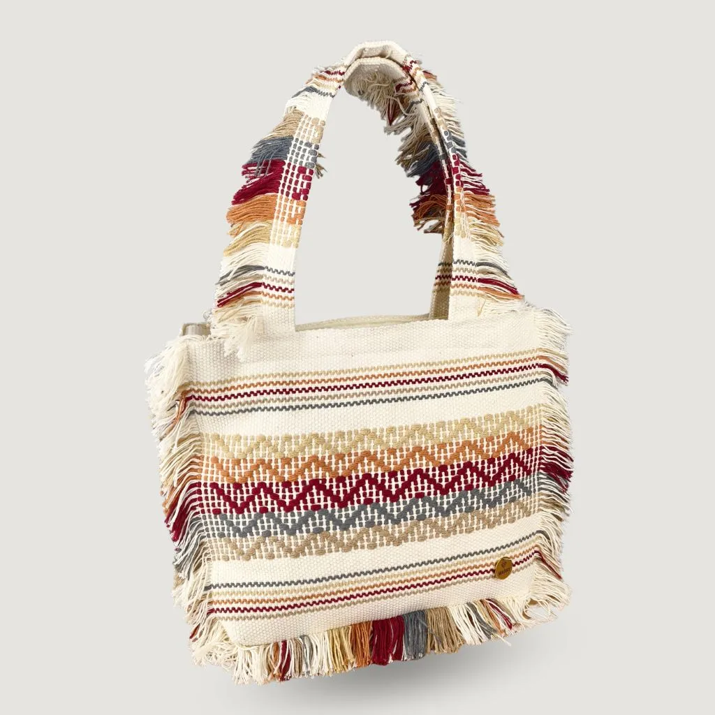 La Bolsa Laia es una bolsa artesanal única hecha a mano en Santo Tomás Jalieza, Oaxaca, utilizando técnicas tradicionales en telar de pedal. Cada pieza refleja la riqueza cultural y el cuidado de los artesanos mexicanos.