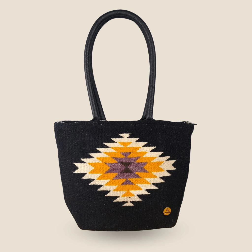 La Bolsa de lana Negra está tejida con tradición y esmero, esta bolsa captura la esencia del trabajo artesanal. La lana, teñida con tintes naturales extraídos de plantas, se transforma en un tejido único gracias al arte del telar de pedal.