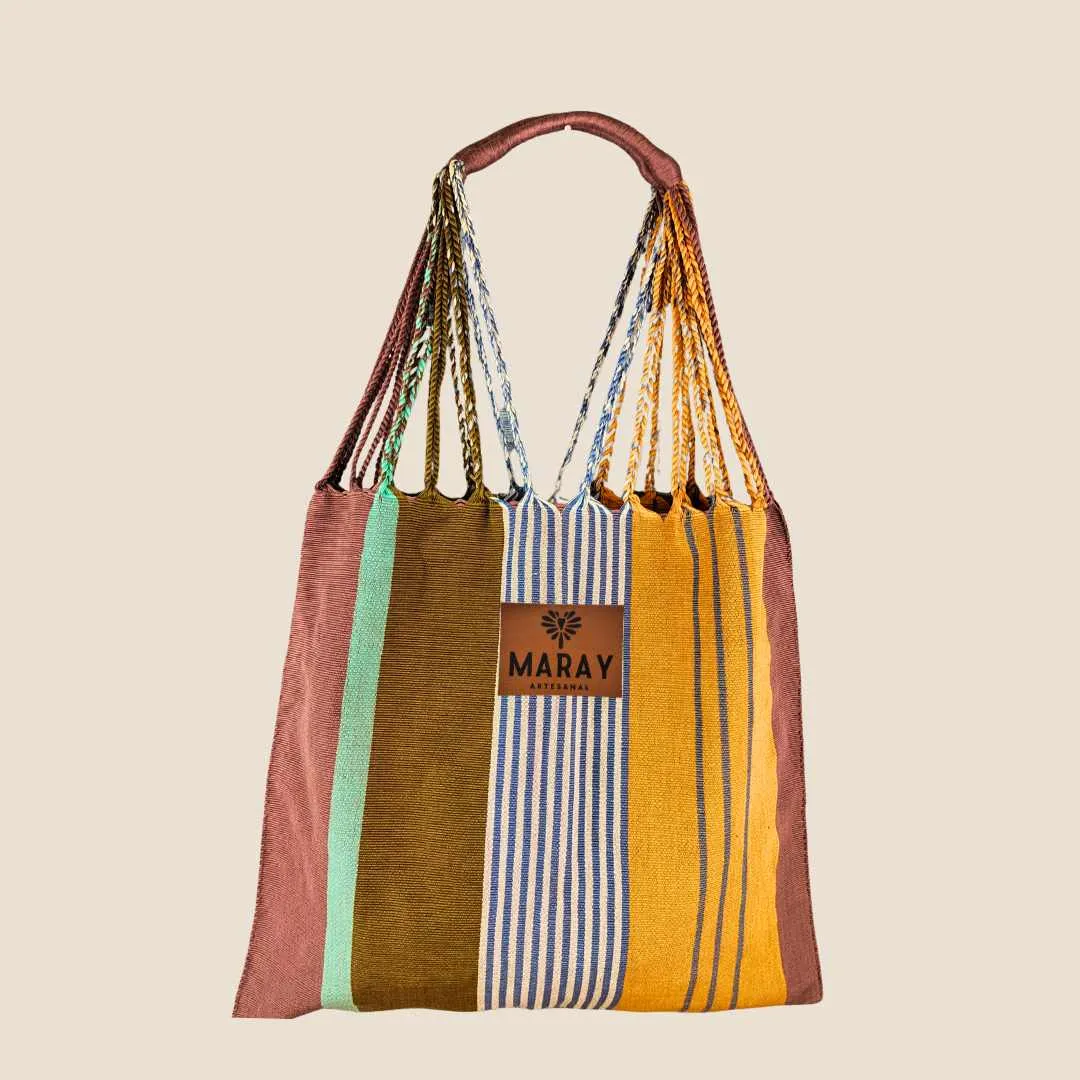 Bolsa Sintra Unisex elaborada a mano por nuestras artesanas chiapanecas en telar de cintura. Asa trenzada muy cómoda para transportar objetos pesados. Gran capacidad, pero muy ligera. Ideal para llevar de viaje, de compras o para el día a día.