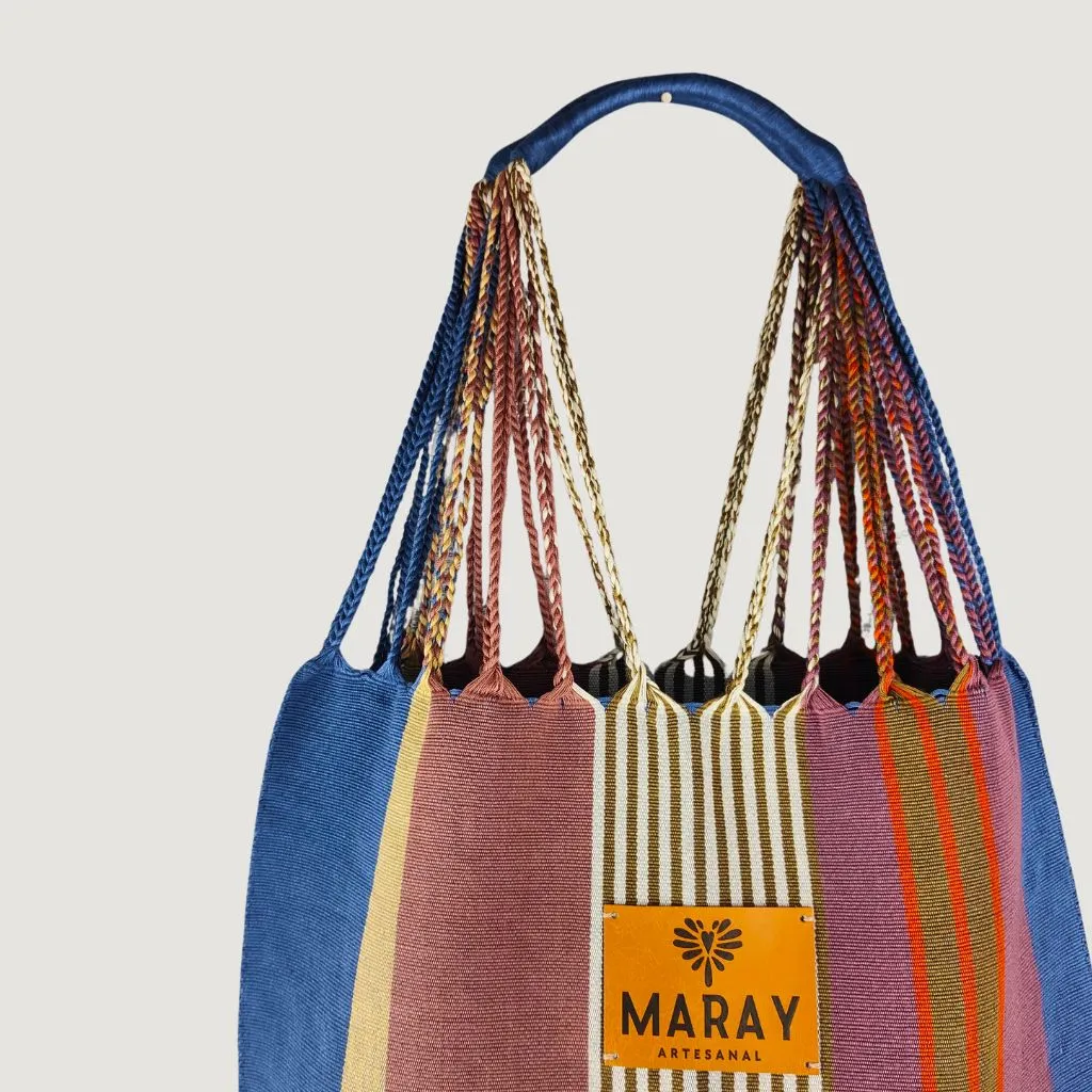 Bolsa Sintra Unisex elaborada a mano por nuestras artesanas chiapanecas en telar de cintura. Asa trenzada muy cómoda para transportar objetos pesados. Gran capacidad, pero muy ligera. Ideal para llevar de viaje, de compras o para el día a día.