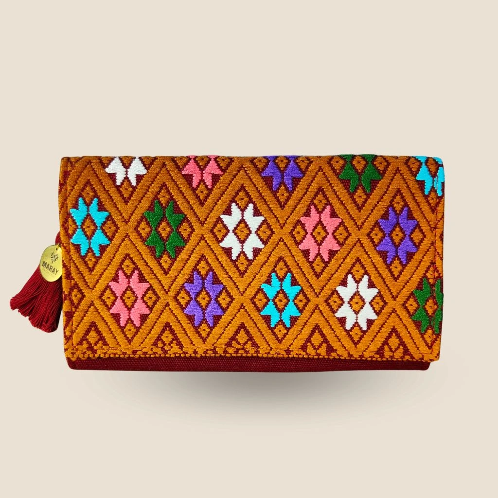Añade un toque de tradición y estilo a tu colección con esta exquisita cartera clutch, cuidadosamente elaborada a mano en telar de cintura. Esta pieza única no solo resalta por su vibrante diseño, sino también por su versatilidad y funcionalidad.