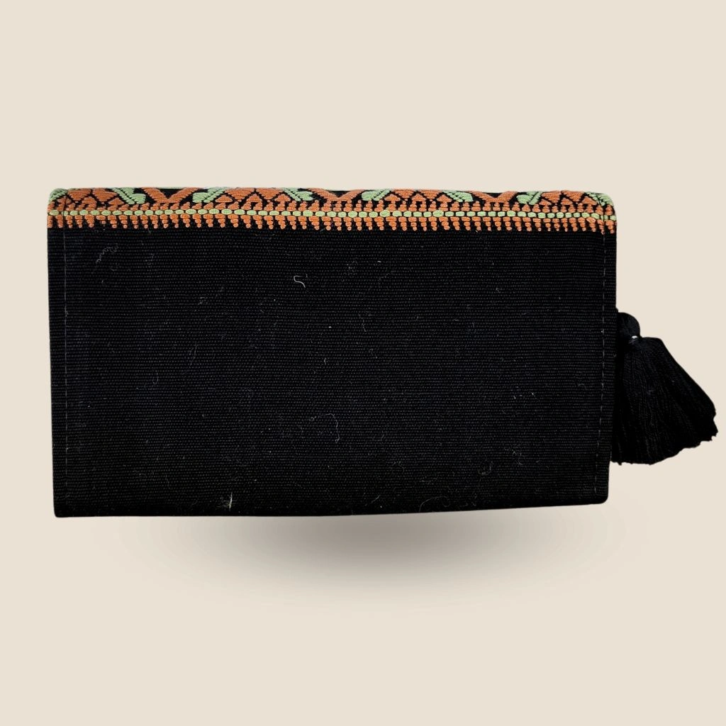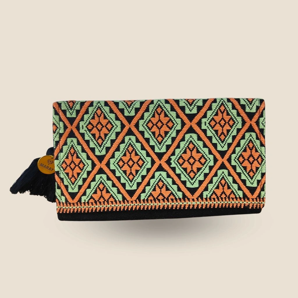 Añade un toque de tradición y estilo a tu colección con esta exquisita cartera clutch, cuidadosamente elaborada a mano en telar de cintura. Esta pieza única no solo resalta por su vibrante diseño, sino también por su versatilidad y funcionalidad.