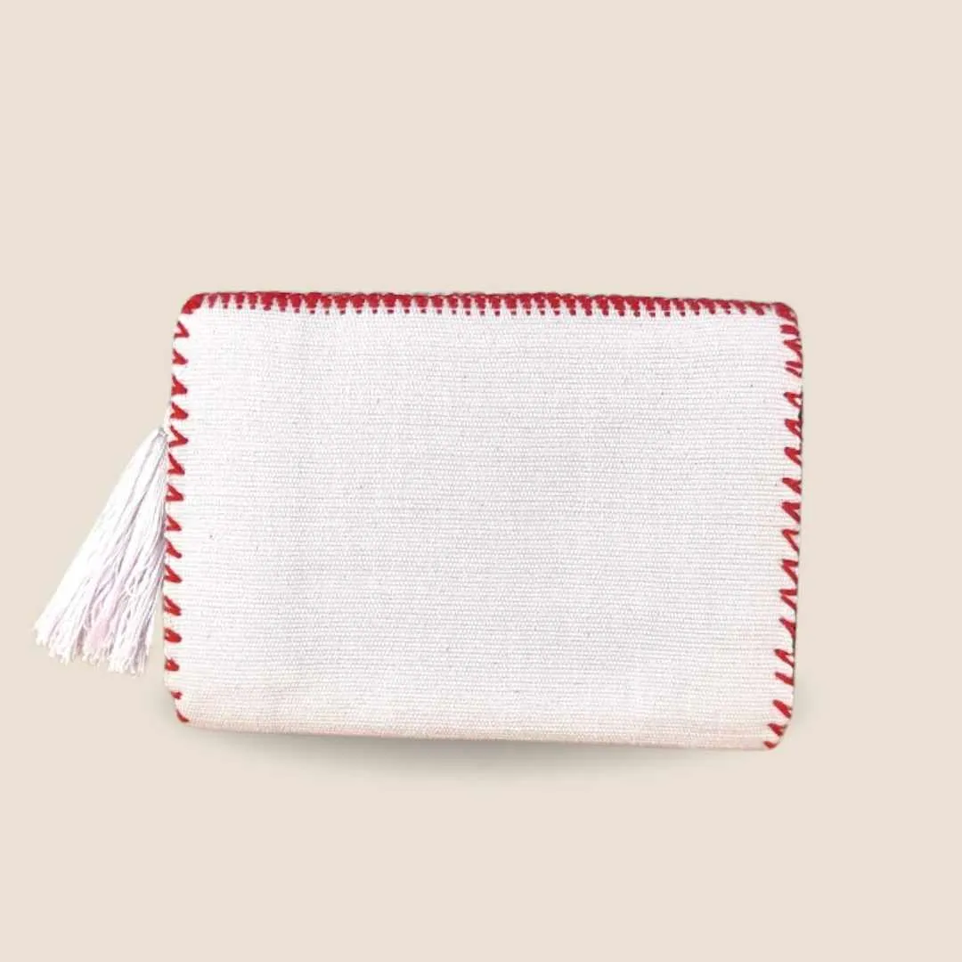 Esta adorable cartera mini es el accesorio perfecto para cualquier mujer. Está hecha a mano con telar de cintura, una técnica tradicional mexicana que produce diseños únicos y coloridos. La cartera tiene un bordado intrincado en la parte delantera y un pompón juguetón.
